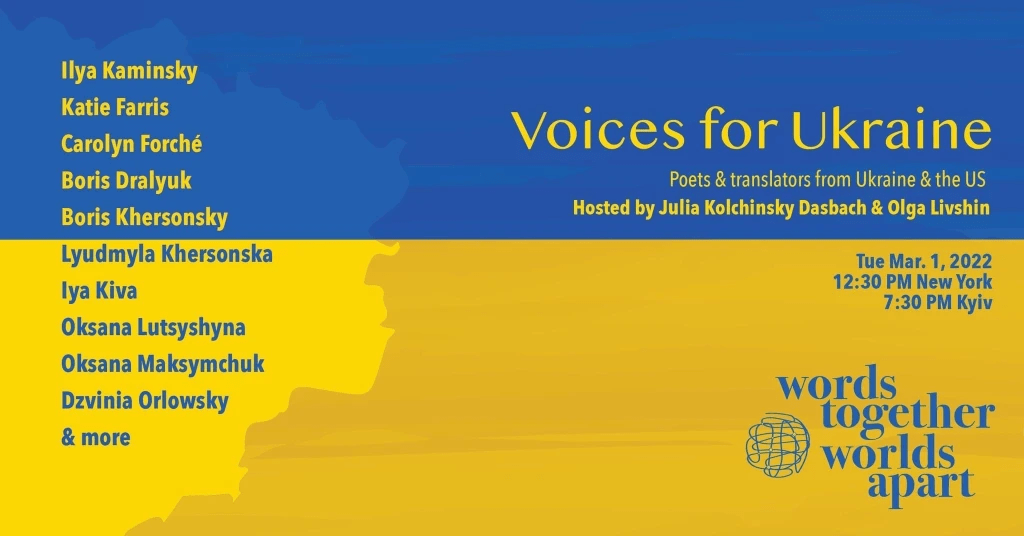 The 2.5-hour online program on March 1st which sprang together with hardly any advance notice, instantly drew an audience of 860 or more from around the world—writers, translators, Ukrainians, plus regular readers, and people from as far away as Bangladesh who have nothing to do with literary circles.